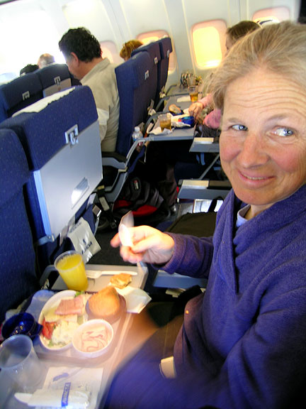 | Kathy on our Aviacsa flight to Monterrey. Our flight, Monterrey airport pickup and transfer to Hidalgo went smoothly. |