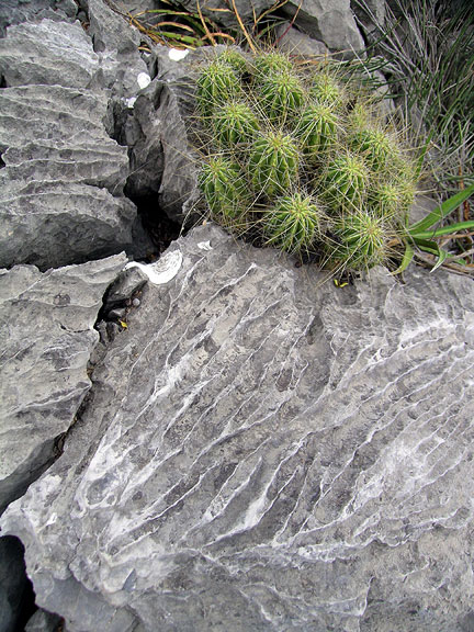 | Sharp rock and sharp spines. The rock is very fun to climb on, rough, good friction, with all sorts of surprise holds where you might least expect them. |