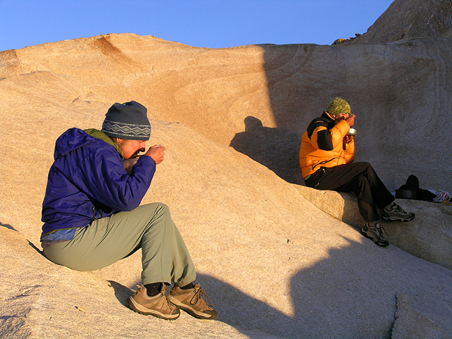 | We returned to the very scenic camp we discovered on the previous trip. The views and (relatively) warm evening sunshine were just as we remembered them. |