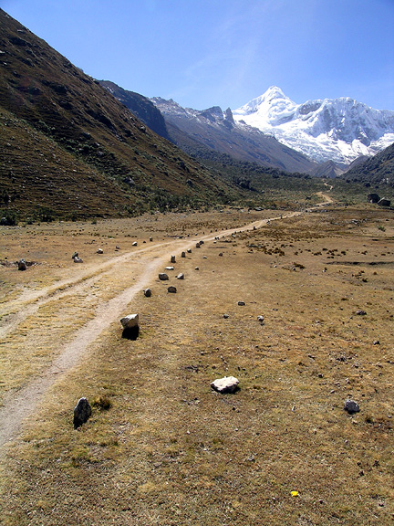 | Despite our efforts to eat and sleep well in Huaraz, the challenge of sufficient caloric intake conspired with the weather to turn us back from the summit the next morning. The in-and-out clouds cleared around us as we descended to the road, and Huaraz. |
