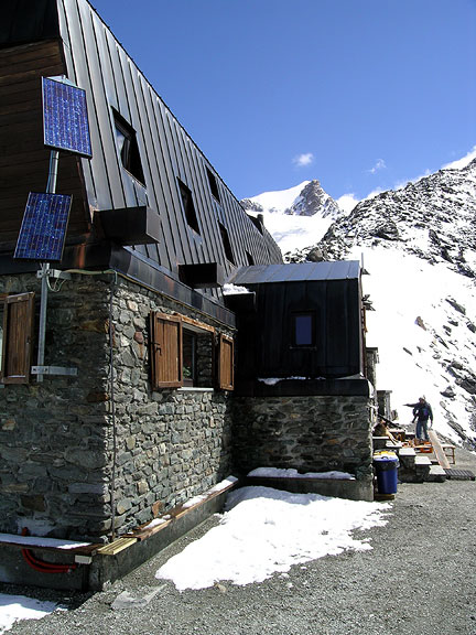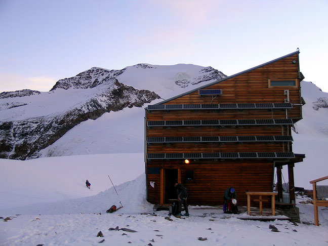 | This is actually our first day. Misty weather (we spent much of the time in a white out) prevented us from climbing the Breithorn, our hoped-for summit of the day. But we did make it to the Ayas hut, which is arguably more important. |