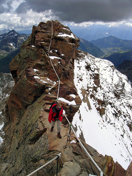 | Just below the Sella hut the "trail" follows a spectacular sharp ridge. |