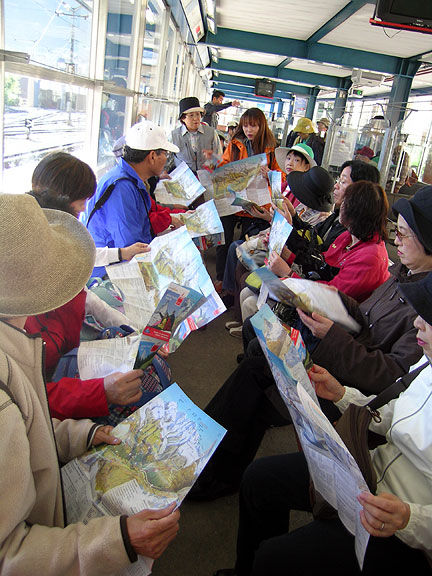 | The following day we did a short rock climb on the Riffelhorn. The Gornergrat train, with its great views, is a popular spot for groups of Japanese tourists. |