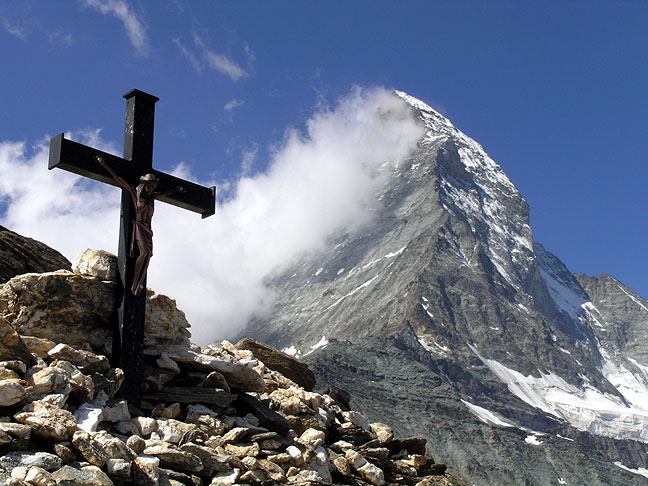 | After our rock climb, we returned to Zermatt, and the following day headed up to the Matterhorn. The route looks to be in good condition, but we heard later that this day was very cold with high winds. |