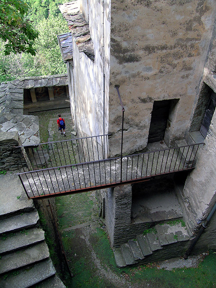 | With a generally rotten forecast for the mountains, we opt for shorts and rock shoes. We have driven into Italy, to a crag called Machaby. In this photo we struggle through the arduous approach. |