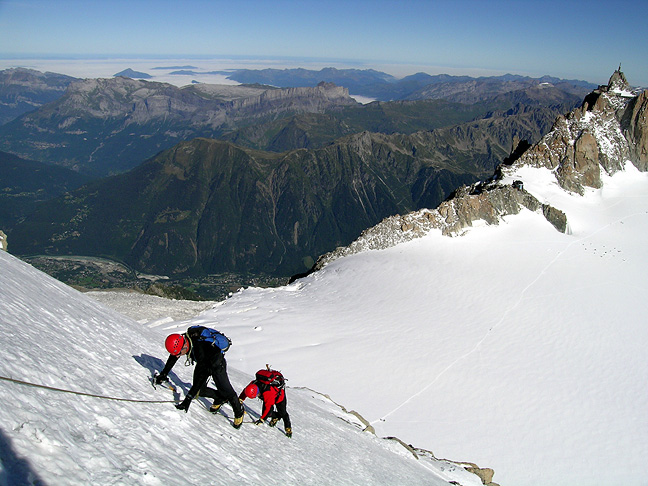 | Mark and Kathy somewhere on the Cosmiques. Fine rock and outrageous views. |