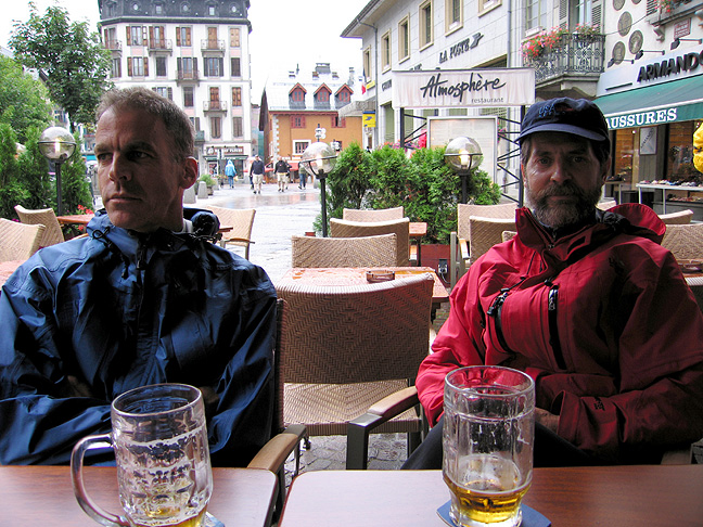 | I think maybe the beer has put them to sleep, or perhaps Jay and Mark tire of all the camera action. In any case, here we are in Chamonix. |