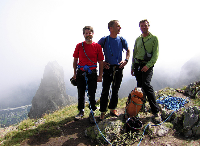 | Mark, Jay and Mark at the top of mani Puliti. You can see the tower of the Index behind, just to the left of the left-hand Mark. |