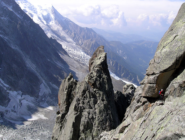 | For our first day in the Mont Blanc Massif, we had great weather. We made an ascent of the Aiguille du Peigne, a fine rock peak in the Chamonix Aiguilles. |