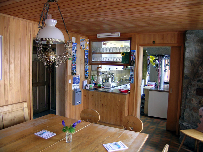 | The dining and kitchen area of the hut. |