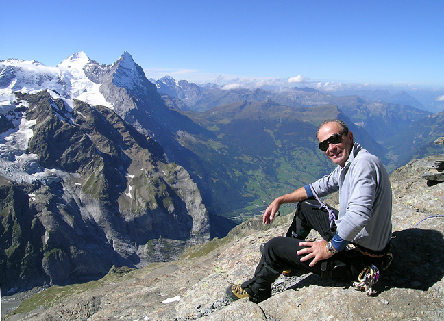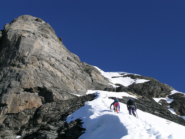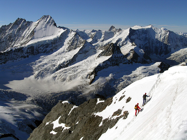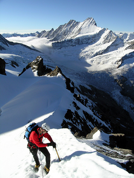 | Here, we have gained the crest of the ridge, and are following to the summit. The Schreckhorn behind. |