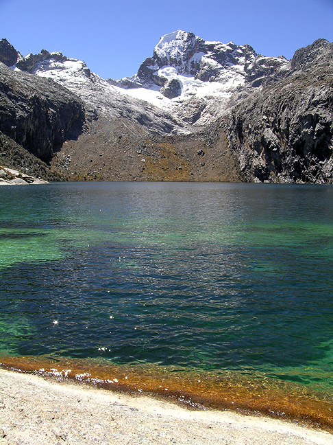 As with many of the trips we do in the Cordillera Blanca, we started this one with a hike up to the beautiful Laguna Churup, seen here. This is a great acclimatization hike bringing us to about 14,650 feet above sea level. |