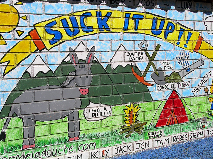 On our hike back down into civilization we encountered this mysterious mural. Good advice for the aspiring Andean mountaineer. |