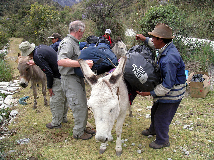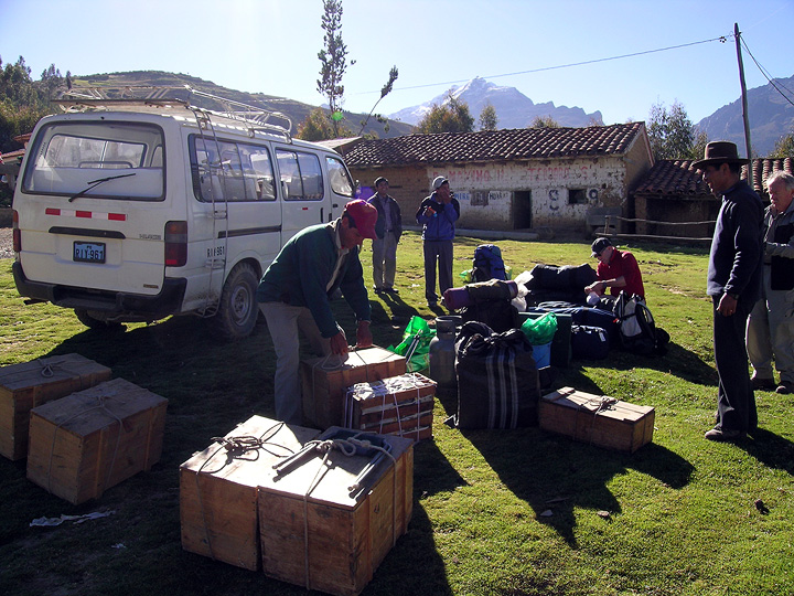 The day after our acclimatization hike we head into the Ishinca Valley which will be our home for the following 13 nights. Here, in Pashpa, we unload the van and await the burros. |