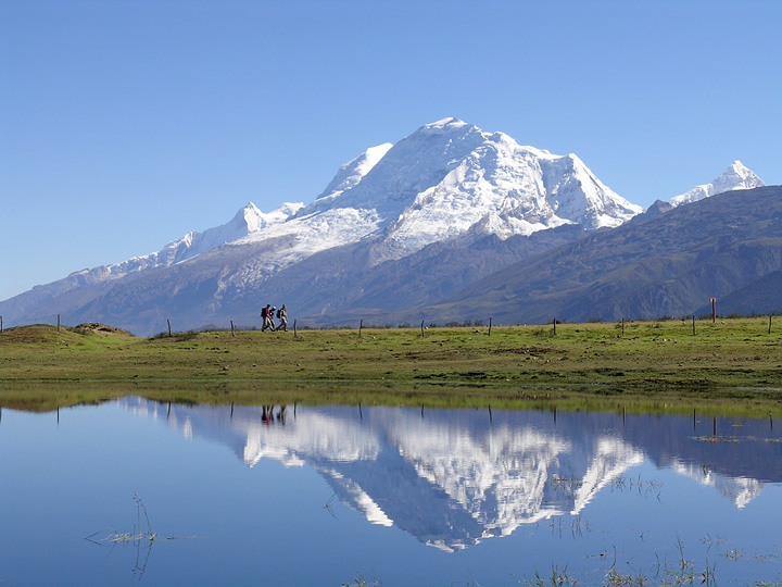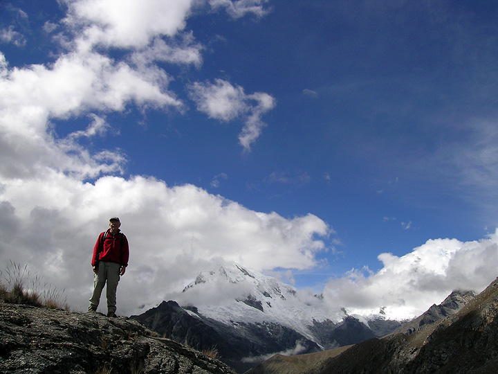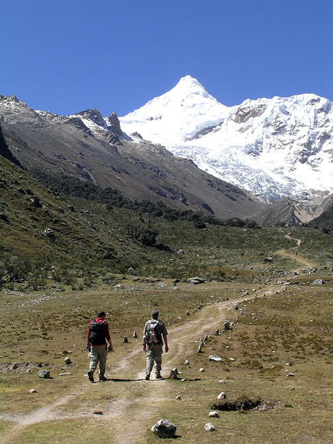 Hiking into the Ishinca area, Huascaran behind. |