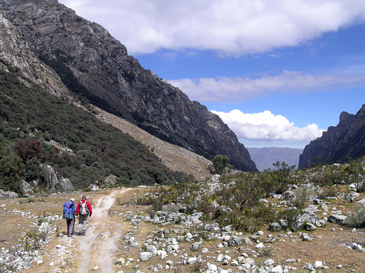 Marc and Rich nearing Ishinca Base Camp. Tocllaraju is the big peak behind. |