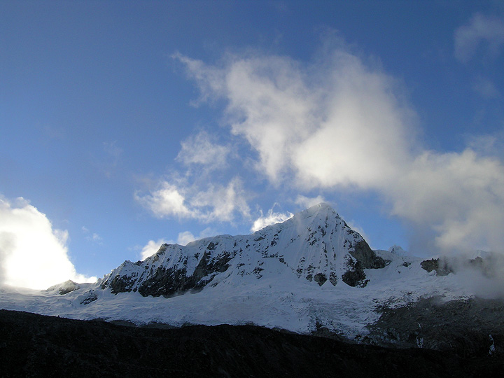 Pisco from Base Camp. The high cloud over the summit, grew. |