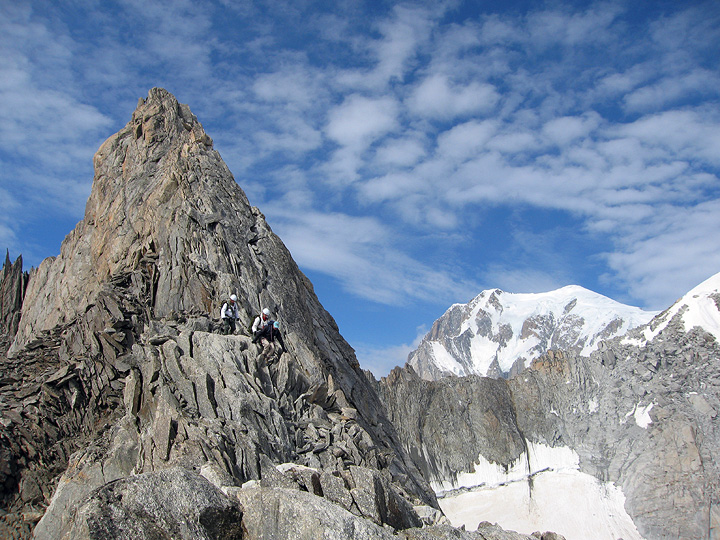 And later in the day, climbing on the Aiguille d'Entrèves. Mont Blanc dominates the skyline on the right. |