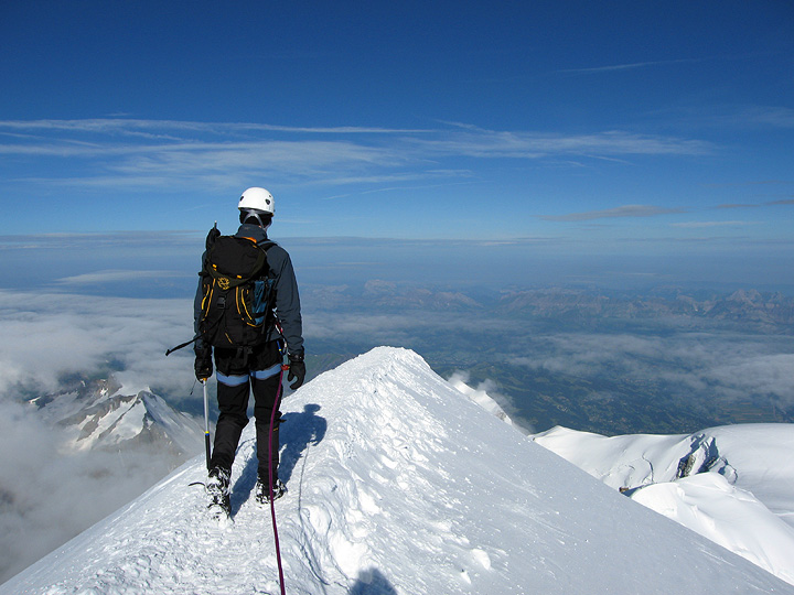 John starts down off the summit of Mont Blanc. On this particular day, we descended the Goûter route, and returned to Chamonix. |