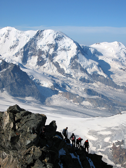 The summit of the Riffelhorn with Monte Rosa behind. |