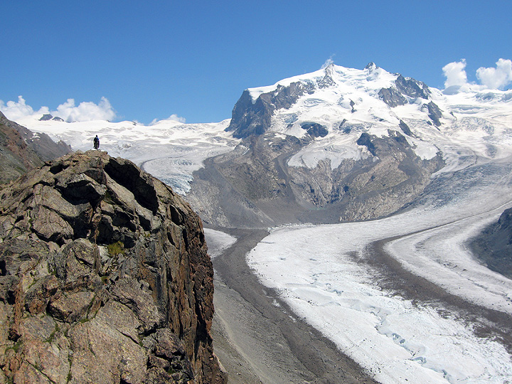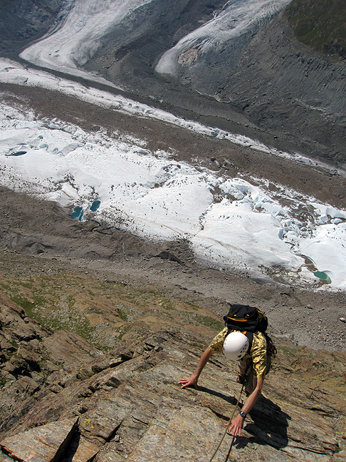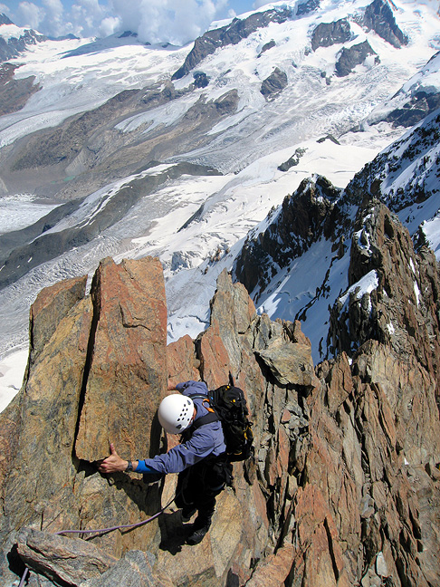 And the next day, something completely different–rock climbing on the Riffelhorn, high above the Gorner Glacier. |