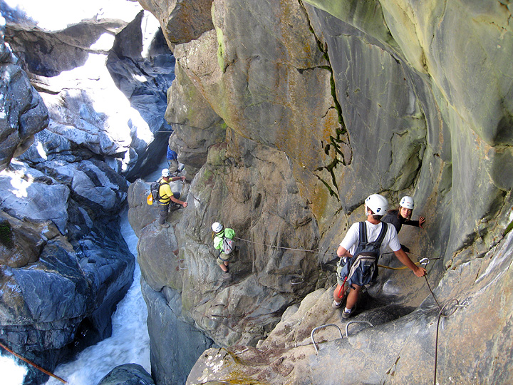 On our last day we opted for a change of pace. The Gorner Gorge is a via ferrata, equipped with cables, several zip lines, and a "Tarzan swing". |