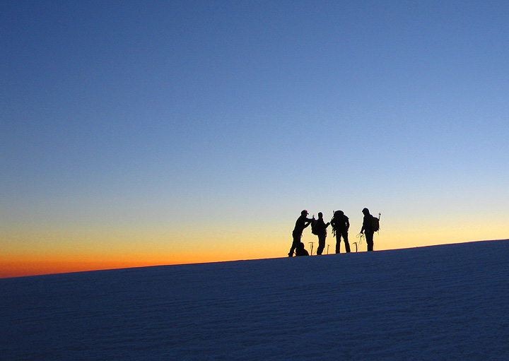 Another party takes a brief break and prepares for the steeper ground to the summit. |