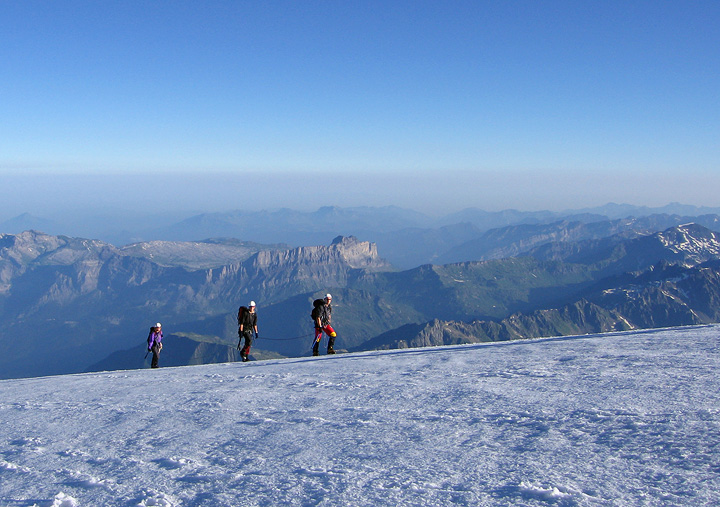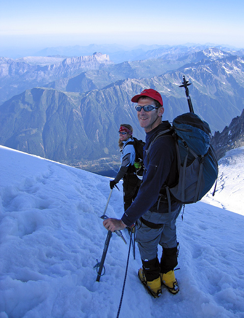 | Eileen and Daniel from Englewood, NJ, showed up in Chamonix to fit in a climb with Kathy, during a longer European tour. They had only a couple of days to spend, but the weather gods were with them, as you can see. |
