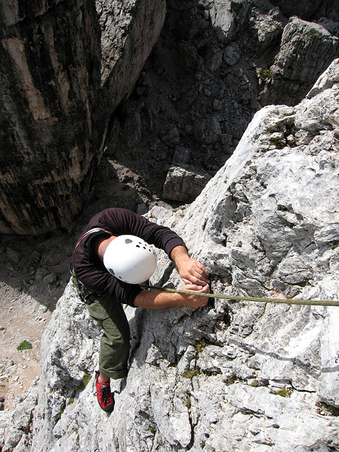 Climbing on Piz Ciavazes. Again, I don't remember the name of the route, sorry. |
