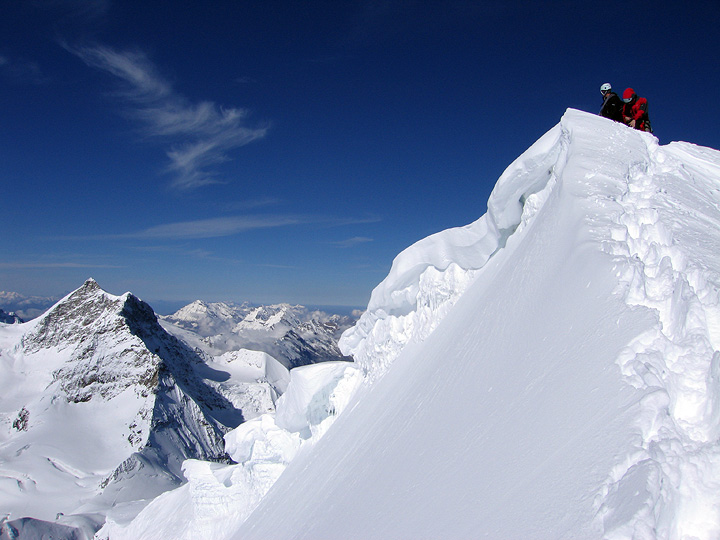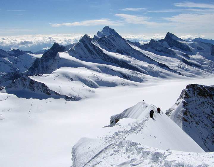 Looking west from the summit of the Monch; the Jungfrau is on the left. |