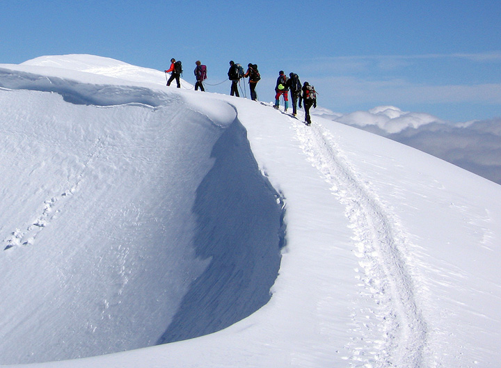 We weren't the only madmen on the hill. Here a group of teenagers gets an introduction to glaciers. |