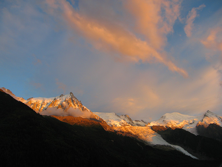 On evening, driving back to Les Houches from Chamonix the sunset on the peaks was too beautiful to miss. This photo was taken from Les Gaillands. |