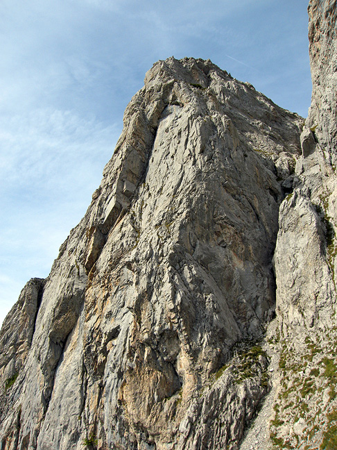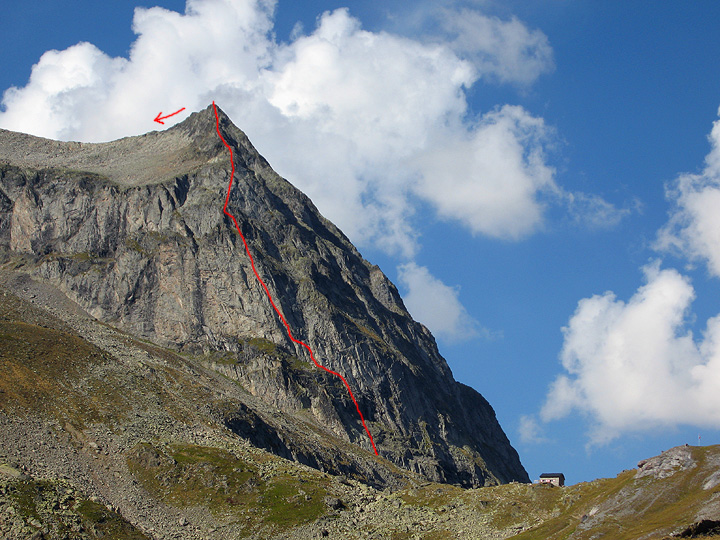 The Wiwannihorn and hut. Rumor had it that the route to do was the Steinadlerroute, one of the longest on the peak, but not too hard. |