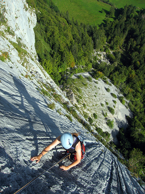 Our search for something new and different occasionally takes us into the Aravis. Here, we visit for the first time a fine climbing area called La Rosiere. Fun, nicely bolted limestone slabs. |