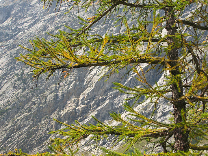 And on another day off, Kathy takes another solo hike, this one on the other side of the valley, up to the Tête de Bel Lachat. Here, we are looking across the valley to the Chamonix Aiguilles. |