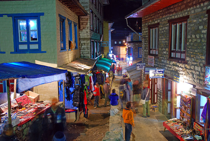 "Downtown" Namche Bazar in the evening. We spent two nights here, acclimatizing, sending email and enjoying apple strudel and cappuccino at the local bakery. |
