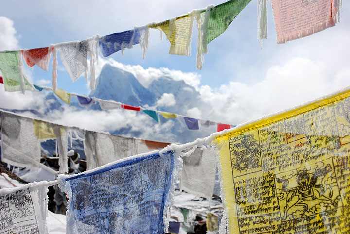 Between the two nights in Gokyo, we hiked up Gokyo Ri, a 5300m (17,400') fine viewpoint above town. Cholatse and prayer flags from Gokyo Ri. |