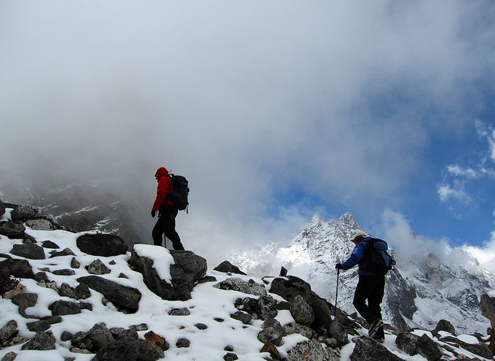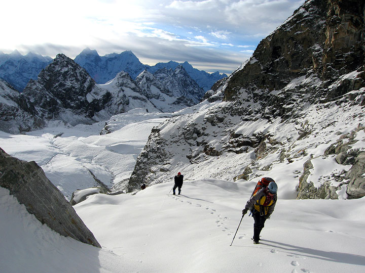 Day 9, crossing the Renjo Pass. On this particular day, the pass was quite busy, with several big groups making the traverse. |