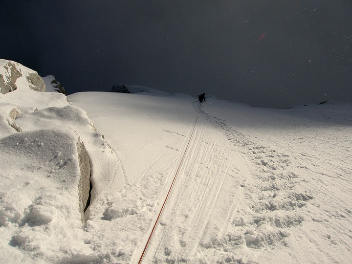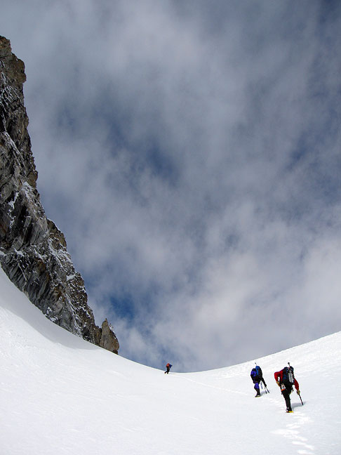 Looking up at the last 500 meters of the route. Actually it is a bit steeper than it looks here. The majority of this terrain was belayed. |