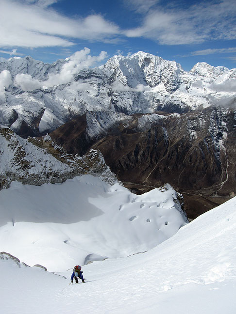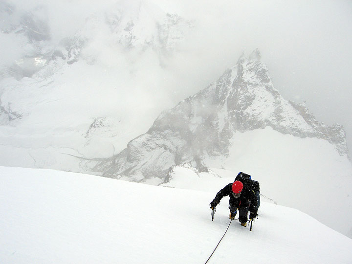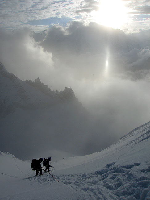 Low on the route on summit day, at dawn. |
