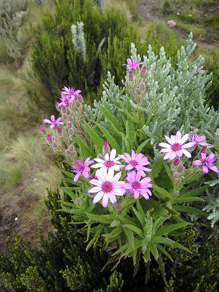 Passing from heavy forest to moorland to alpine grassland, the variety is wonderful. Actually the variety of plants that all bear the name "Lobelia" is itself rather amazing. Here is one type of Lobelia, the "Cabbage" Lobelia.... |