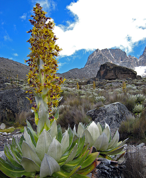 One of the great joys of climbing Mt. Kenya is the array of unusual and beautiful plants that we find on the approach. |