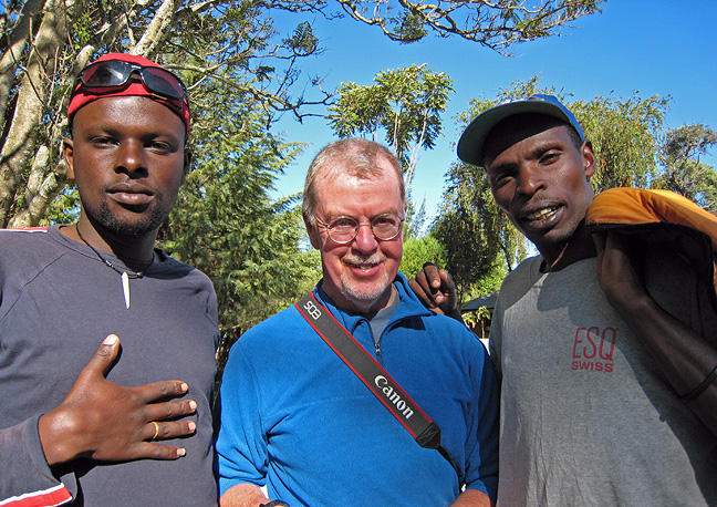 Andy poses here with our trail guide, Samuel, on his right, and cook Daniel, on his left. |