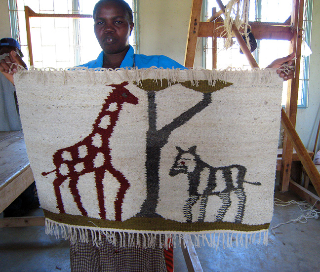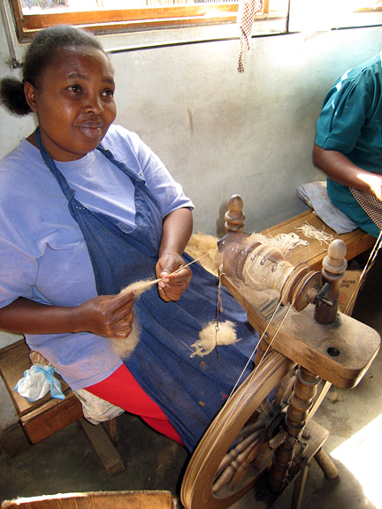 With a few hours extra to spend on our last morning, Samuel suggested a visit to a local spinners' and weavers' workshop in Nanyuki. Kathy was in heaven! Here a local woman spins fine yarn for shawls. |