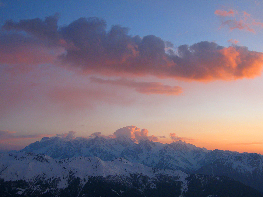 The comfortable and cozy Mont Fort soaks up the last rays of the sun later that evening. |