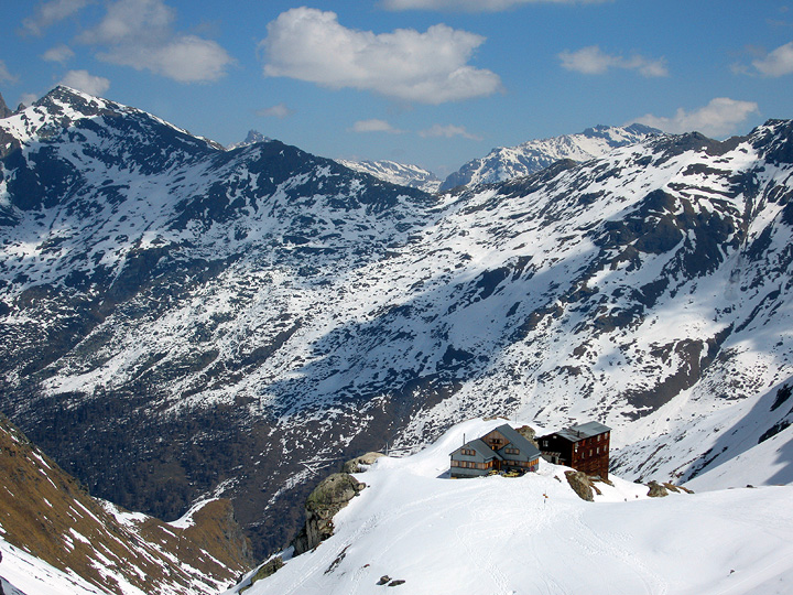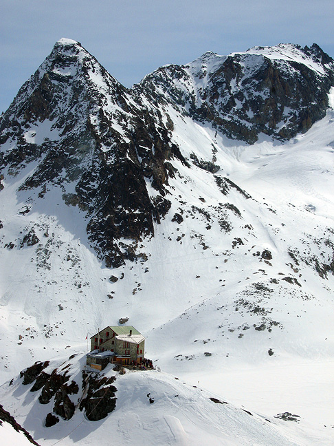 Cresting a small col above the Cabane des Dix, we skied the last few meters down to it in time for lunch. |