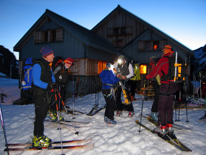 Another early start the following morning, we turn off our headlamps as we leave the hut. |