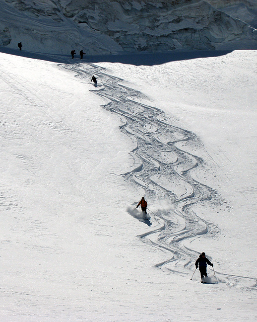 We found some really nice pockets of powder up high in little compression zones between the crevassed areas... |