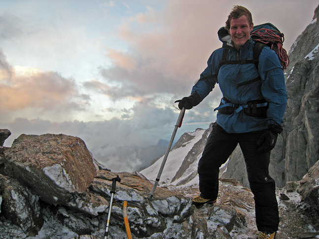 A very fast walker, Nick is ready to head down for "second breakfast"! We were off the glacier well before the sun's heat started to soften the snow. |