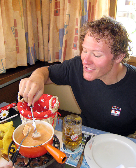 Back in Saas Almagell, we enjoyed a last lunch together (Fondue! Yum!) before parting company; Kathy back to Chamonix and Nick on to Austria. I hope he'll be back in the Alps again one day, for a break from the Midwestern Plains. |